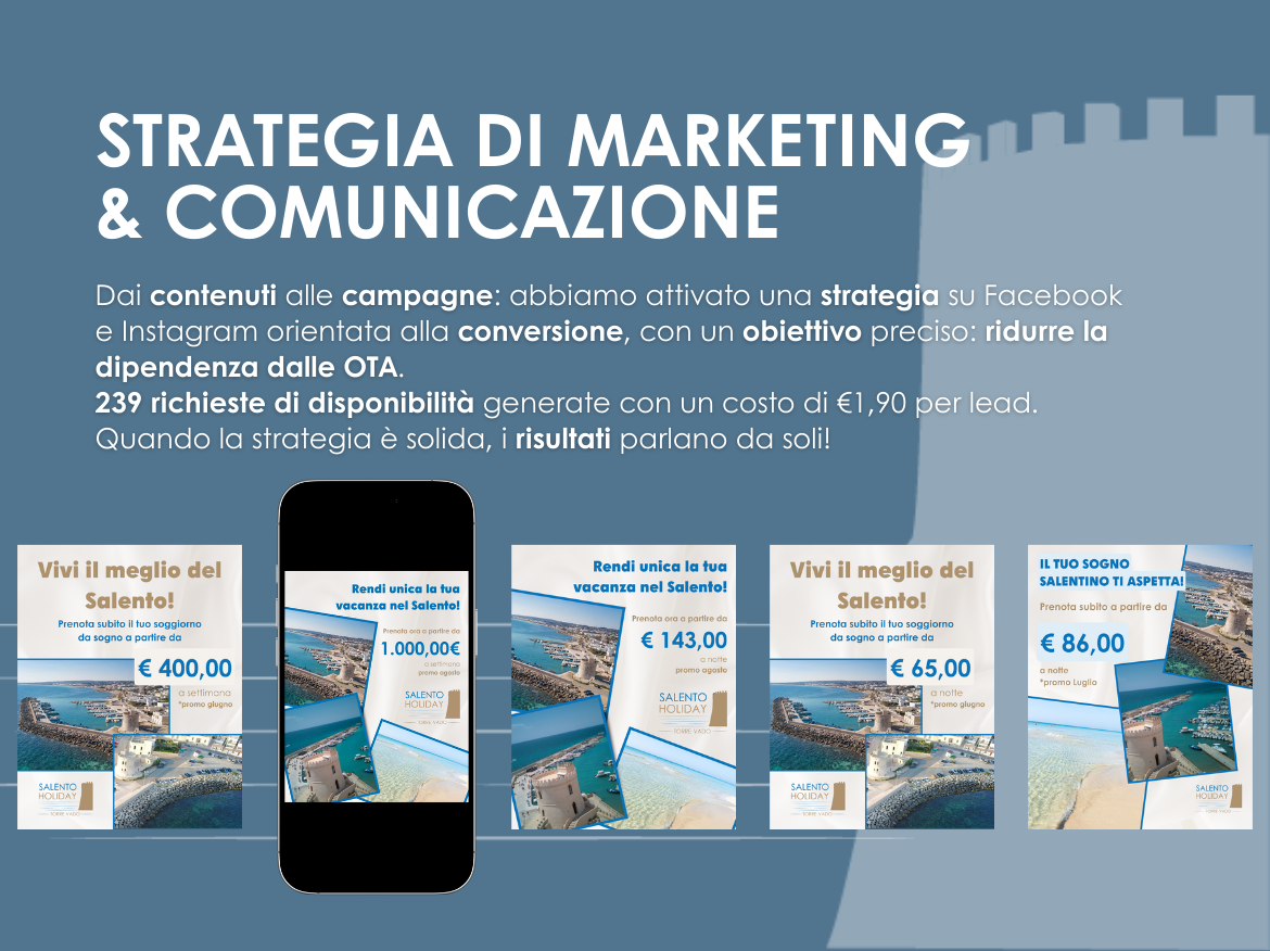 Quando il cliente si è rivolto alla Parrotto Web Solution, l’obiettivo era chiaro: valorizzare un complesso di cinque appartamenti situati nella marina di Torre Vado, riducendo la dipendenza dalle OTA e aumentando le prenotazioni dirette.